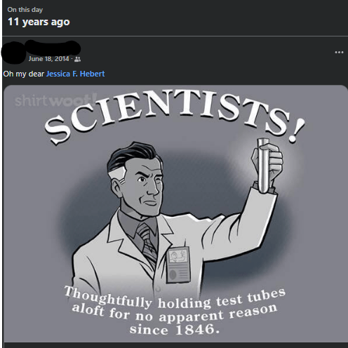I don’t spend as much time on Facebook these days as I used to (and if you’re reading this linked from there, it’s only because of you and people like you that I love who are there and I don’t want to lose touch with that I’m still sticking around at all, but consider subscribing to this newsletter instead so there’s a consistent place when Facebook inevitably gets even worse than it already is, or you can find me on any of these places from my Linktree), but sometimes I check in and there’s a memory post, up front and center.