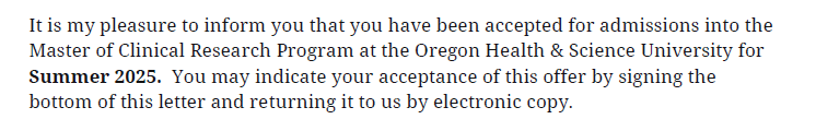 With my current credits, I will complete OHSU’s Master of Clinical Research degree by the end of the next academic year. I finished my second final for 6 months of Biostatistics courses this week. This summer, I’m taking two courses back to back, one night a week. In the fall and winter, it’ll be a course one night a week and a seminar one night a week. In the spring, a course for about 6 weeks. And then I’m done.